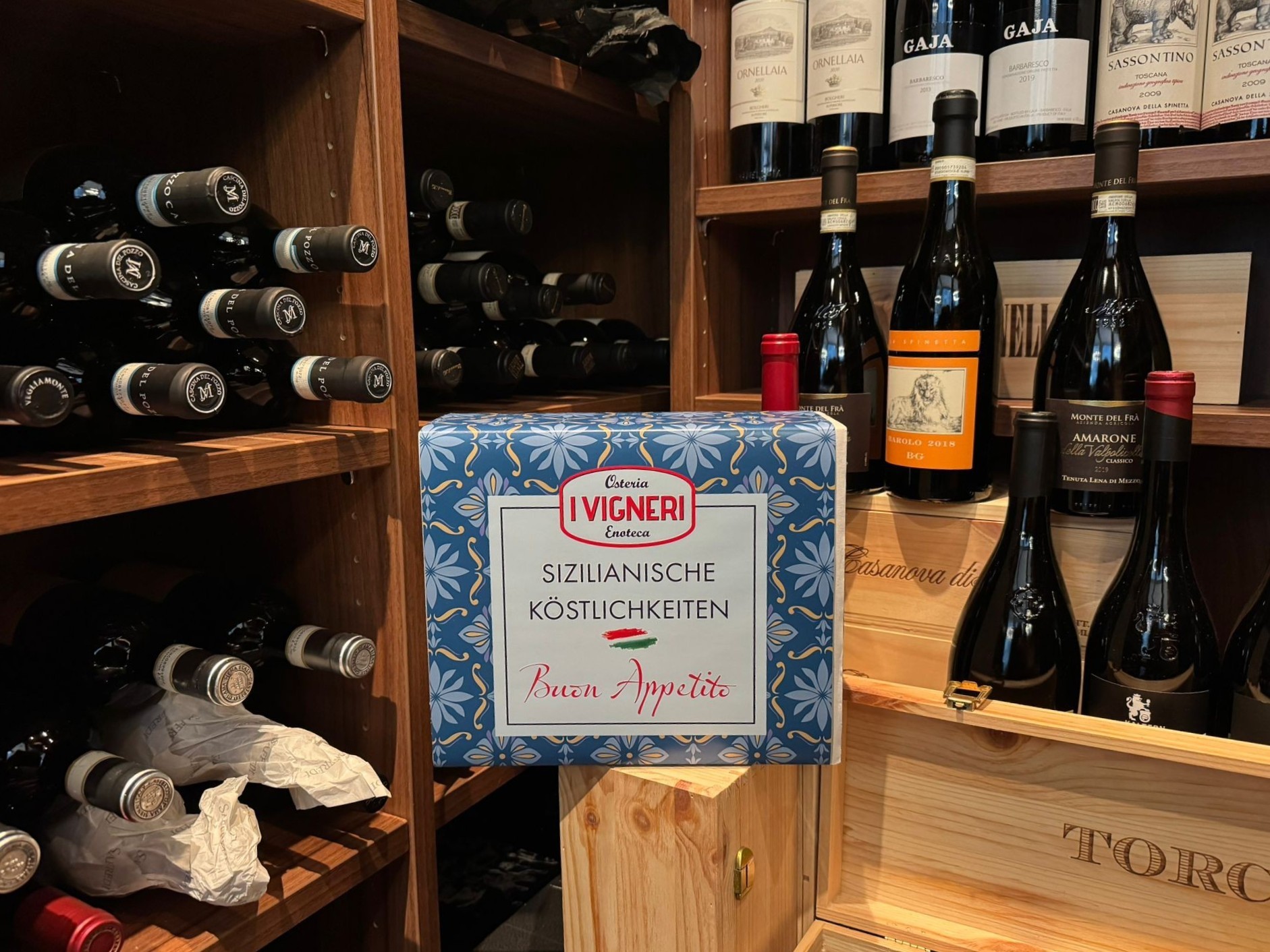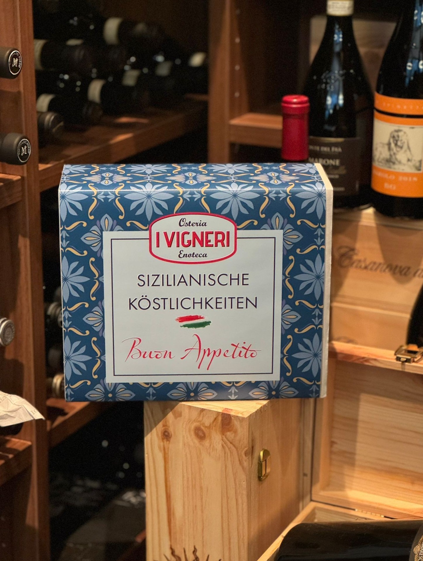 Sizilianische Köstlichkeiten stilvoll verpackt: Unsere Geschenkbox kombiniert ausgewählte Produkte aus dem I Vigneri‑Sortiment und eignet sich für viele Anlässe – als Dankeschön, Geburtstagsgruß oder kleine Aufmerksamkeit.